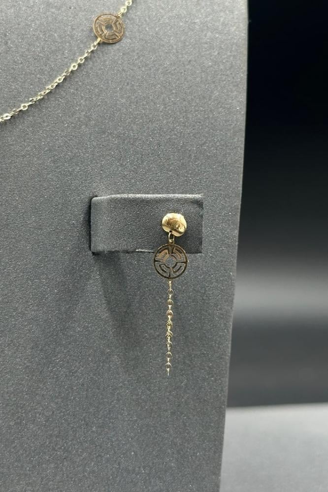 طقم ذهب عيار 18 صافي شكل دائرة لأطلالة أنيقة بوزن 1.5 جرام