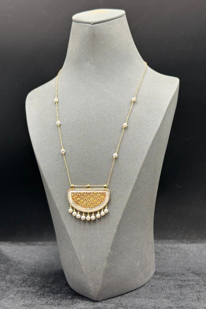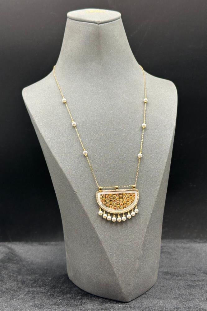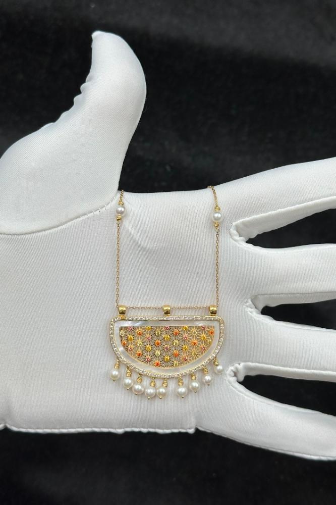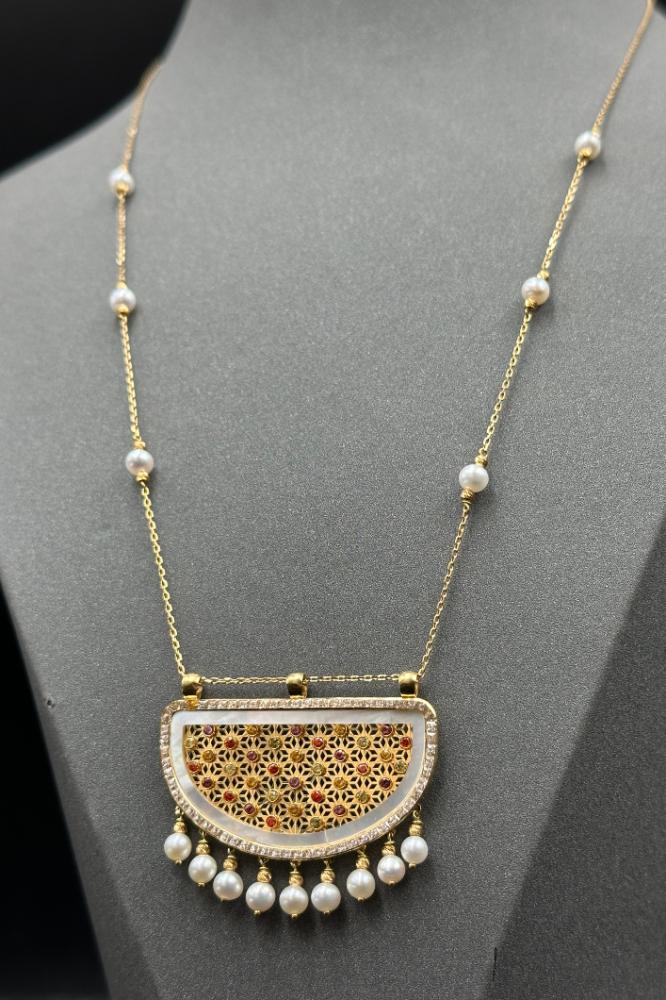 - عقد شناف ذهب مع لؤلؤ تصميم الماس
