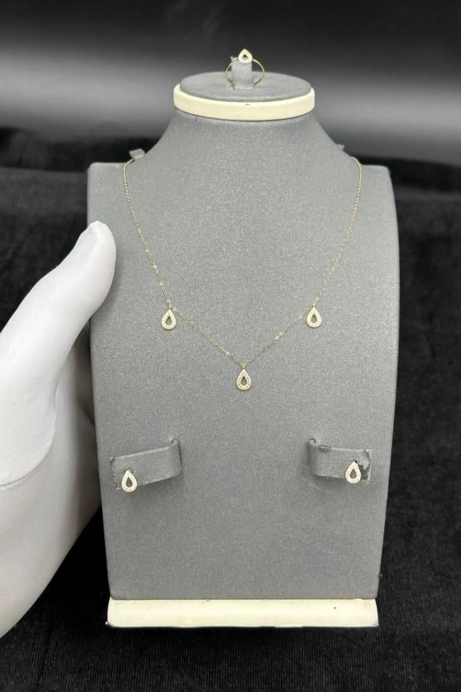 - طقم اطفال دمعة مفرغ ذهب تصميم الماس