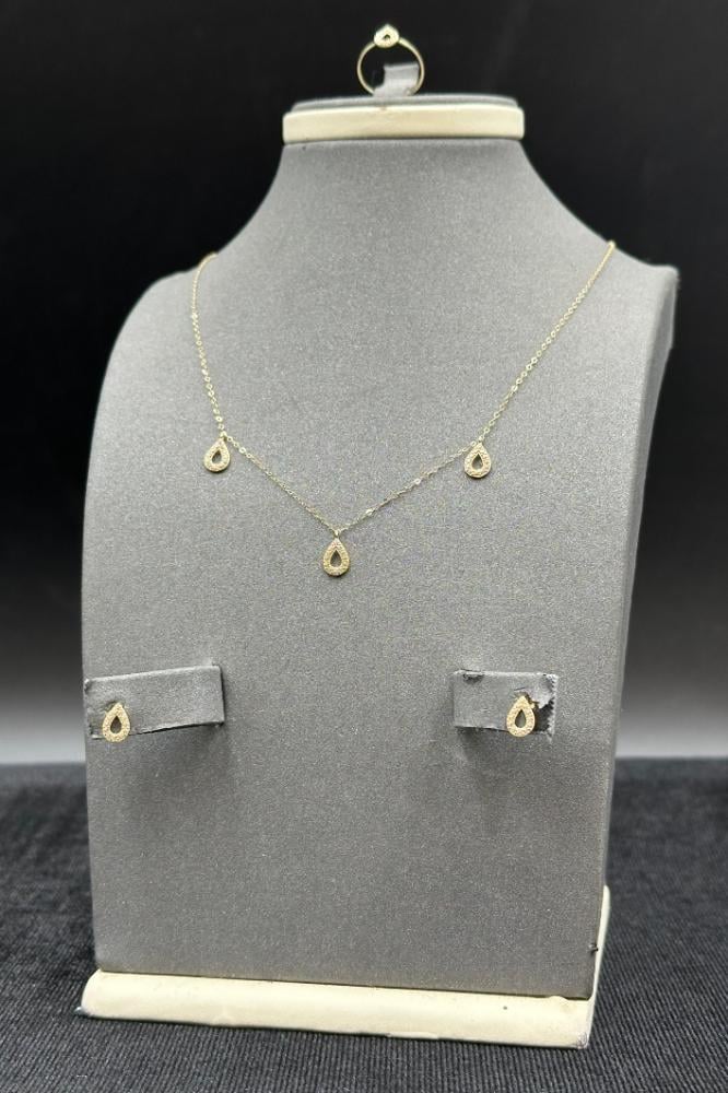 طقم اطفال دمعة مفرغ ذهب تصميم الماس عيار 18 وزن 1.4 جرام