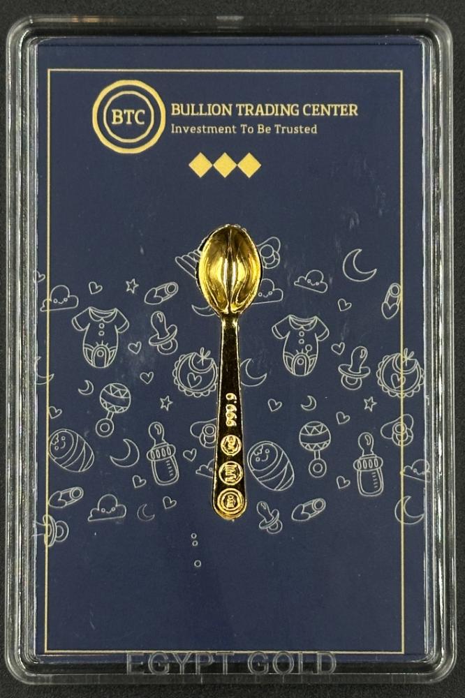 تميز بإضافة فريدة إلى مجموعتك مع سبيكة ذهب على شكل ملعقة عيار 24 من سبائك BTC. هذا التصميم الفريد والجذاب يأتي بعدة أوزان (2.5 جرام - 5 جرام) ويعكس الحرفية العالية والجودة التي تميز سبائك BTC.
