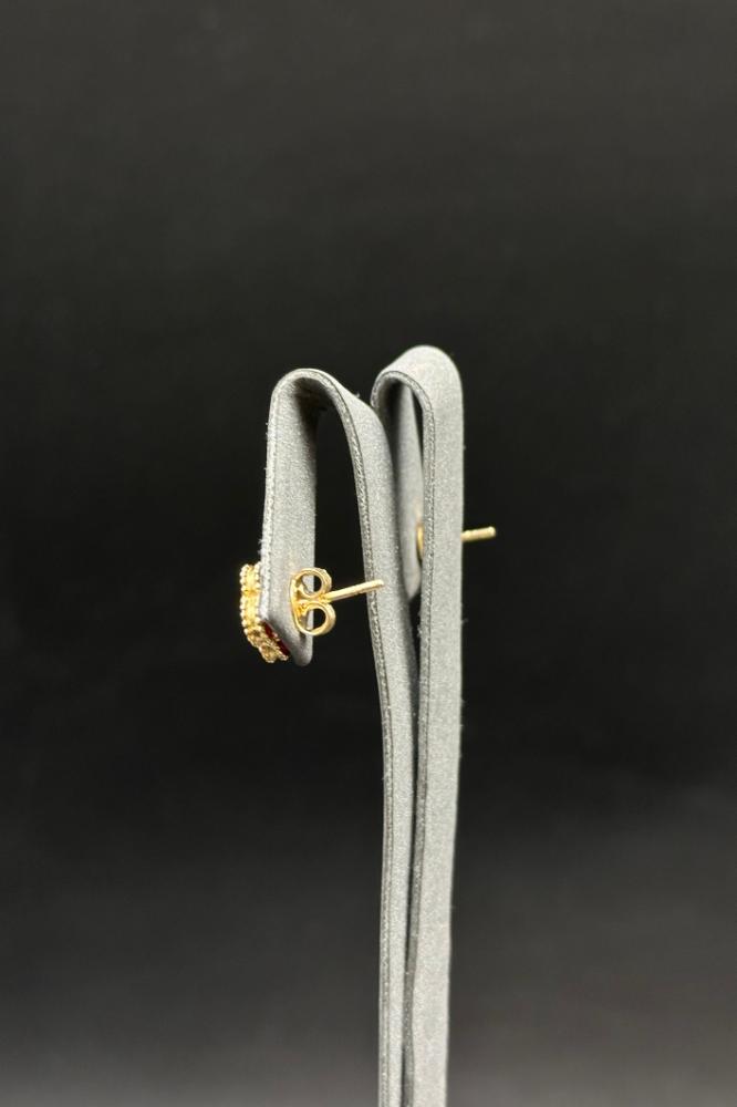 حلق وردة ذهب مع فص احمر عيار 18 وزن 2.2 جرام