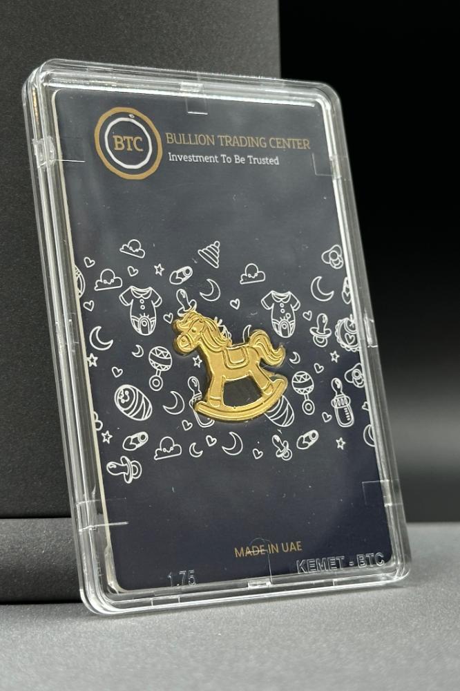 سبيكة ذهب BTC عيار 24 على شكل حصان ذهب صافي بوزن 5 جرام
