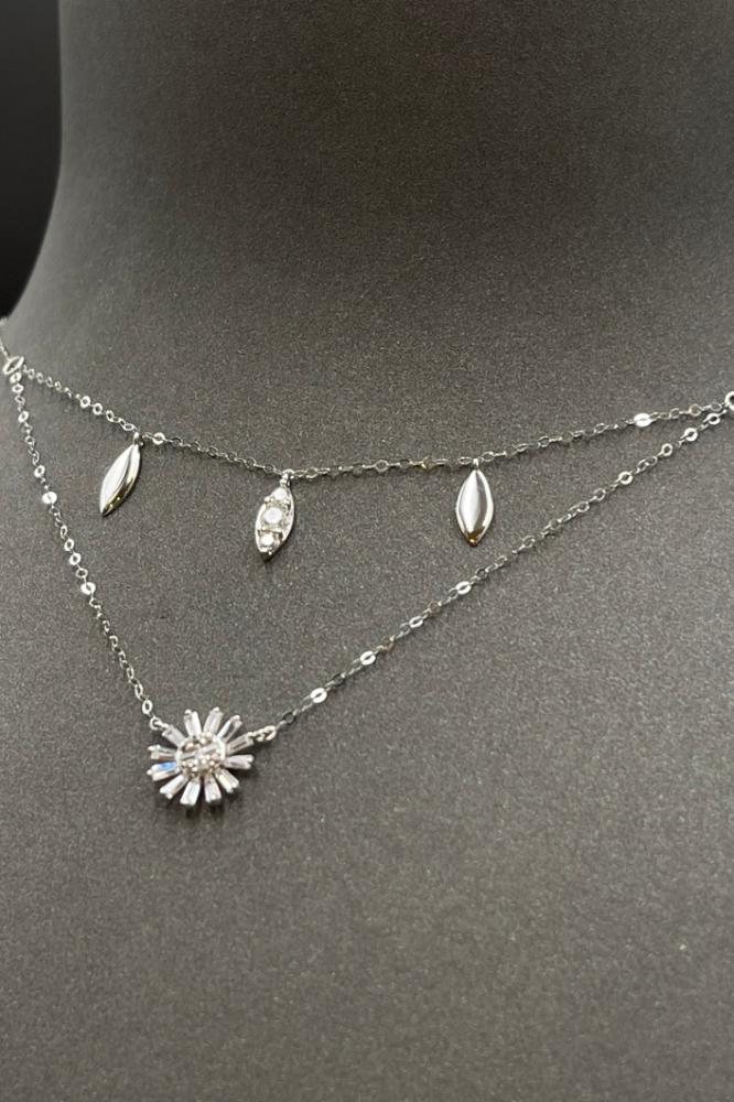 عقد ذهب ابيض دورين - زهرة مع معينات تصميم الماس