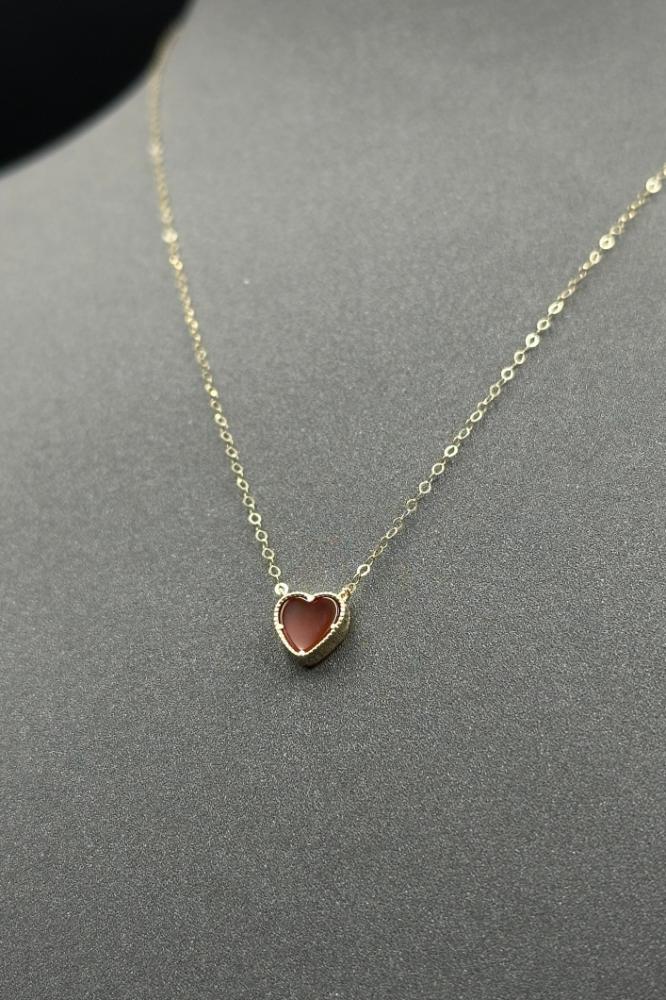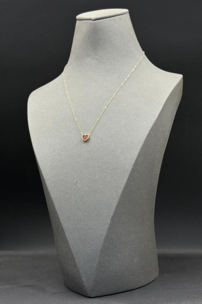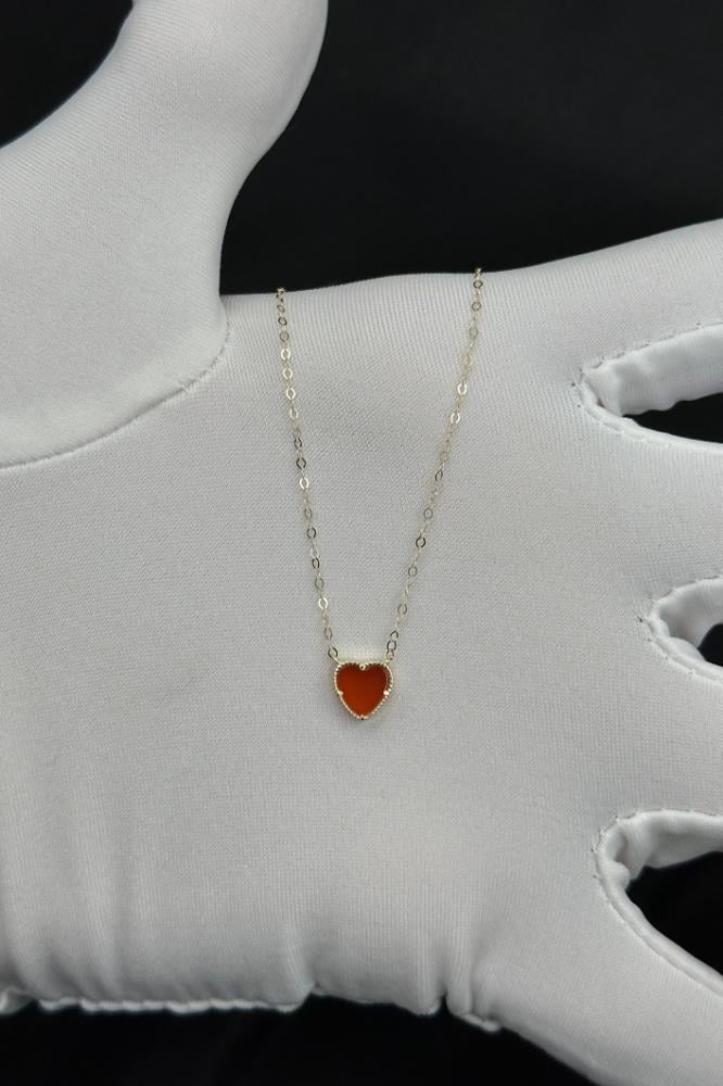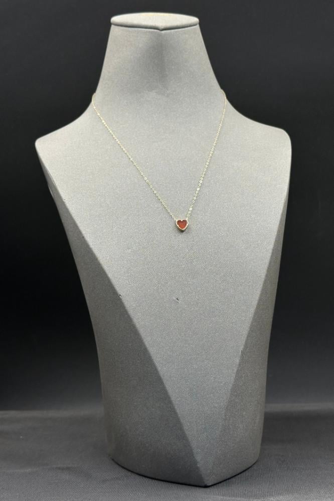 وزن من 0.6 الى 0.7 جرامعيار 18طول العقد 42 سمعقد قلب ذهب مع صدف احمر سعر المنتج مرتبط بسعر الذهب العالمي