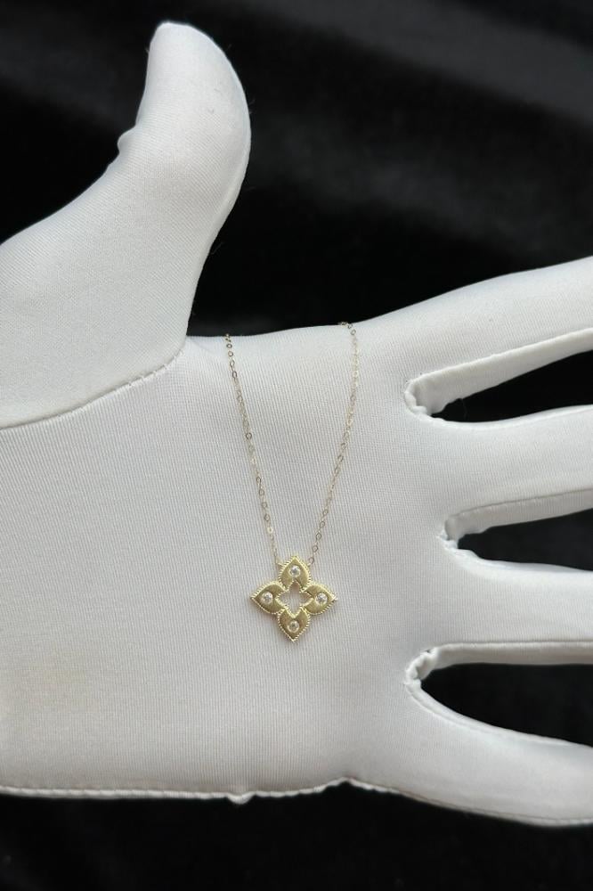 عقد زهرة ذهب تصميم الماس عيار 18 وزن من 1 الى 1.1 جرام