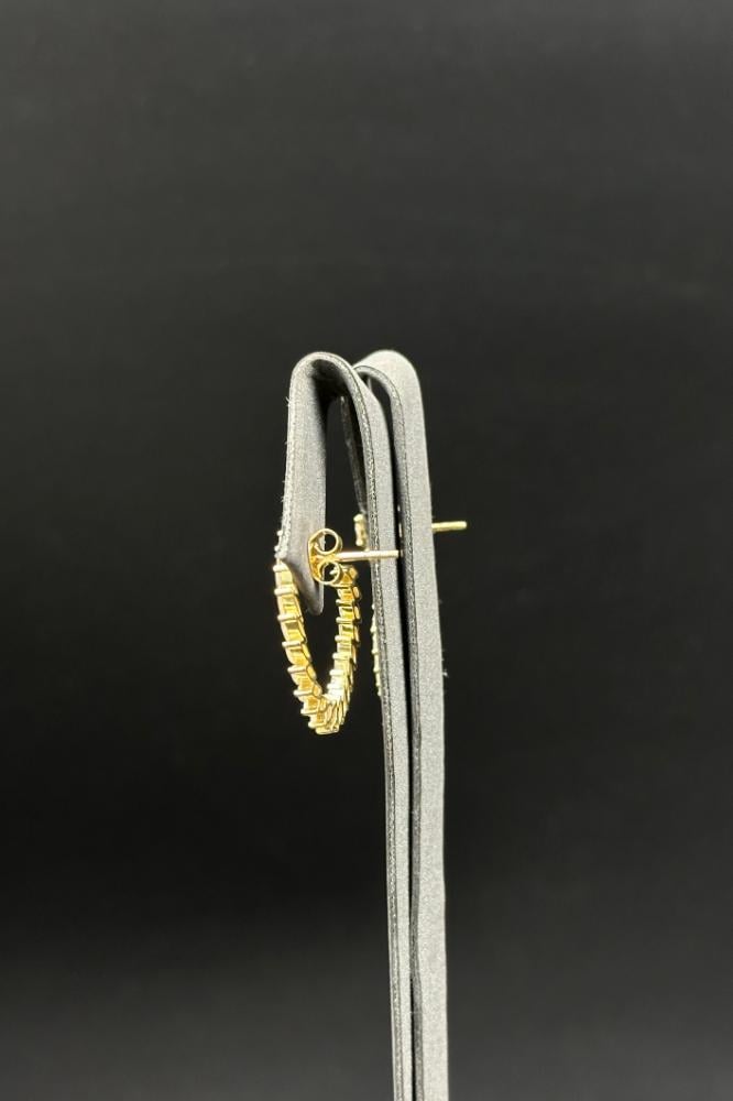 أبرزي إطلالتك المميزة مع حلق تنس ذهب عيار 18 تصميم الماس بوزن من 5.5 إلى 5.6 جرام من متجر خالد حلبي. تصميم التنس الأنيق يضفي لمسة فخامة على أي مناسبة، مثالي للاستخدام اليومي أو كهدية راقية تسرق الأنظار.