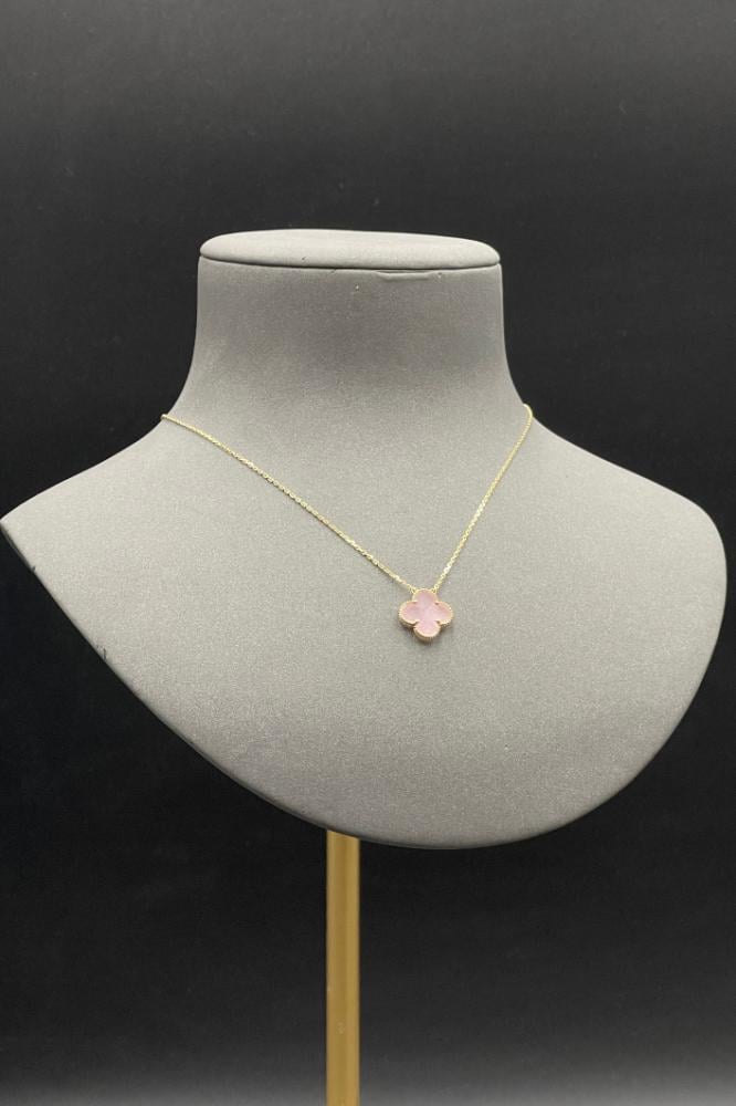 عقد وردة ذهب مع صدف وردي عيار 18 وزن 3.4 جرام