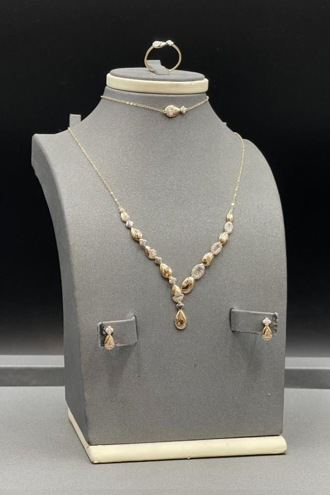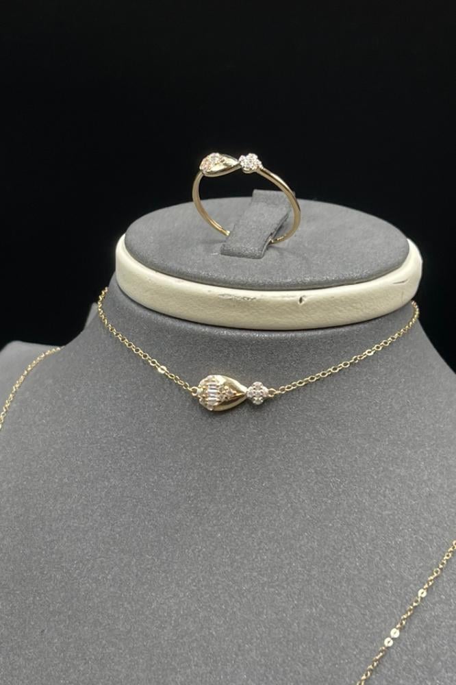 طقم دمعة مع باقيت ذهب تصميم الماس