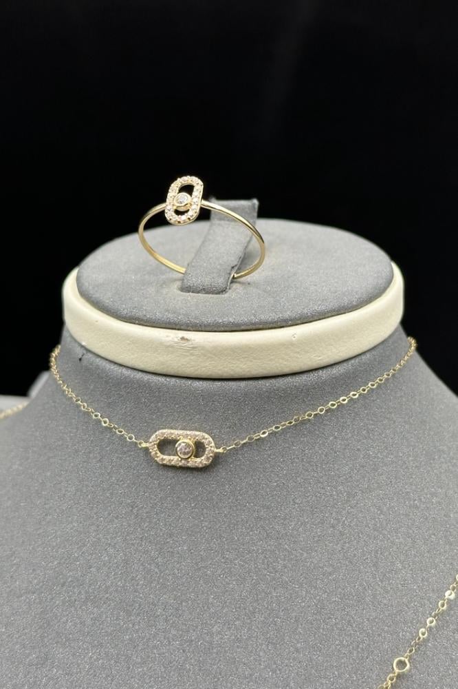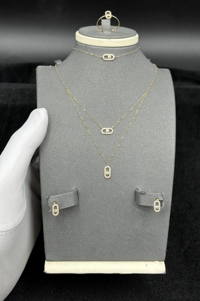 طقم دورين مستطيل ذهب تصميم الماس عيار 18 وزن 2.3 جرام