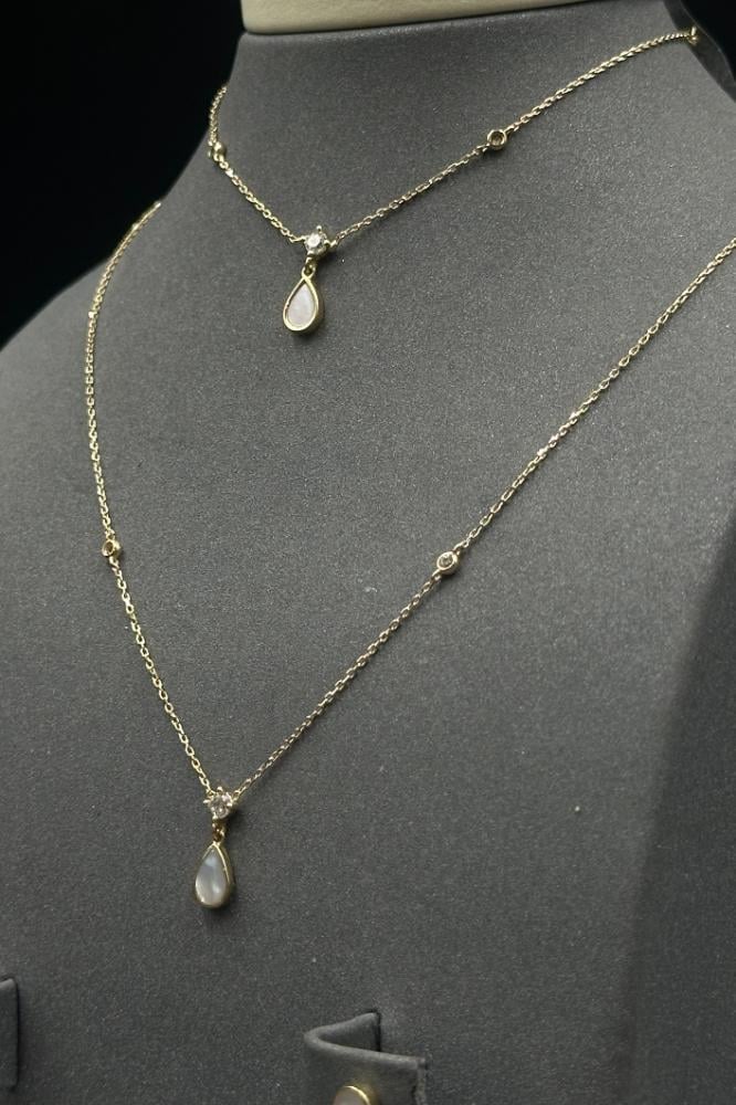 - طقم اطفال شكل دمعة ذهب مع صدف