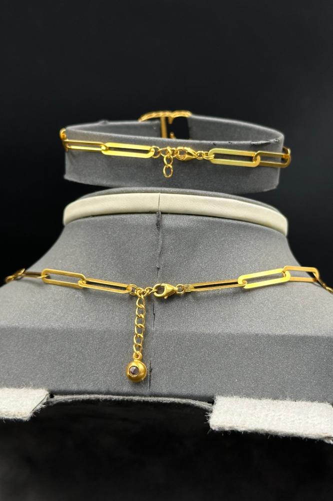 بوزن 25.7 جرام، وطول عقد 50 سم مع أسوارة 20 سم، يمنحك الطقم حضوراً لافتاً ولمسة براقة تضيف لمسة من الرقي إلى إطلالتك سواء في المناسبات الخاصة أو كهديّة ثمينة تعكس الذوق الرفيع.