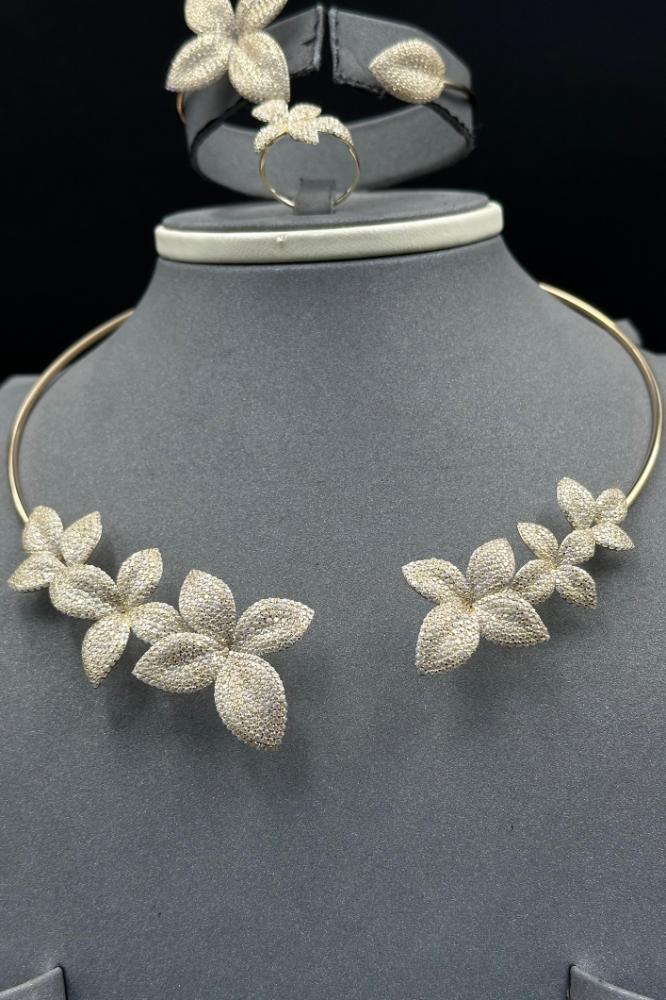بوزن كبير يصل إلى 37.8 جرام، هذا الطقم يمنحك حضوراً بارزاً في كل مناسبة ويضيف لمسة من الأناقة المترفة لإطلالتك، مما يجعله خياراً مثالياً للسهرات والمناسبات الخاصة أو كهدية مميزة تعكس الذوق الرفيع.