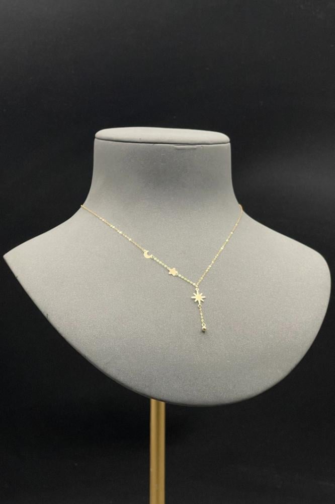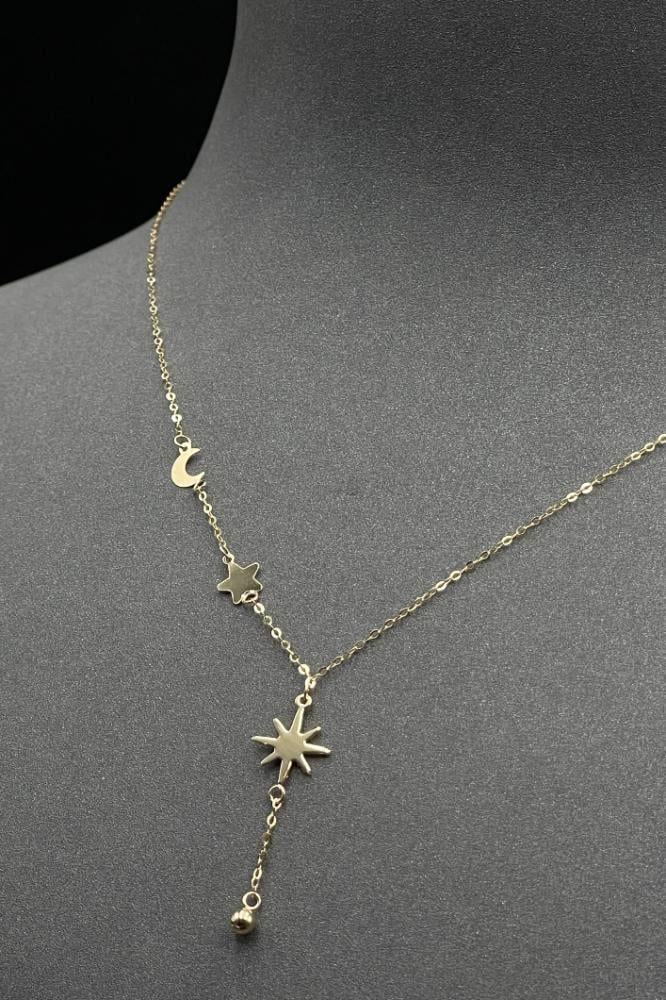 عقد شكل شمس ونجمة وهلال ذهب تصميم ايطالي عيار 18 وزن 0.9 جرام