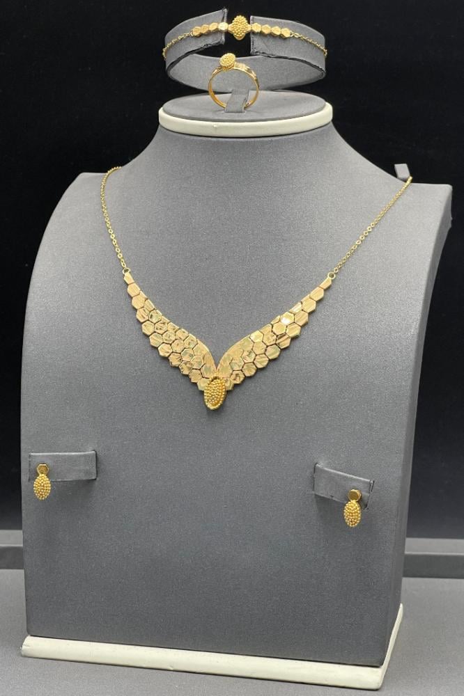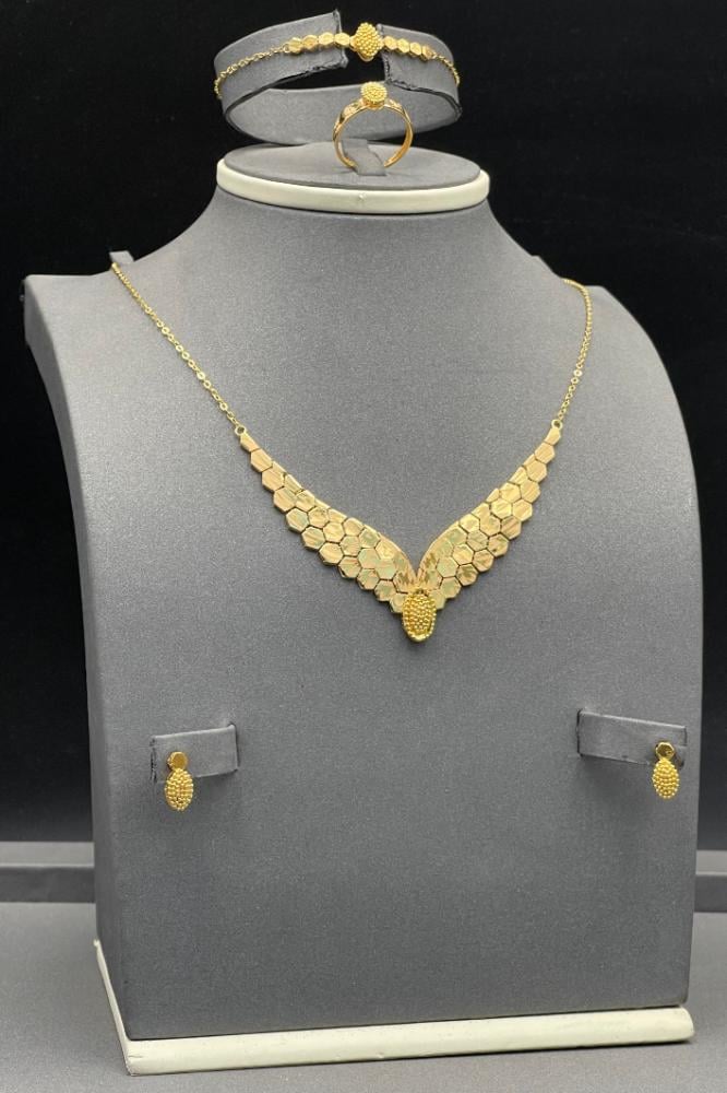 وزن 14.7 جرامعيار 21طول العقد 50 سمطول الاسوارة 18 سمطقم جناح الصقر ذهب صافيسعر المنتج مرتبط بسعر الذهب العالمي