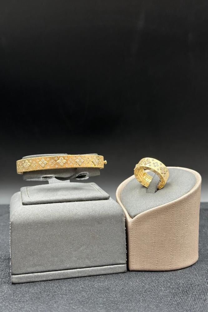 اسوارة مع خاتم وردة ذهب تصميم الماس عيار 18 وزن 16 جرام