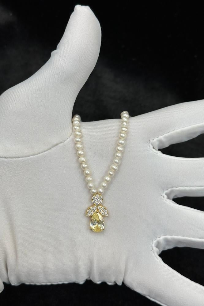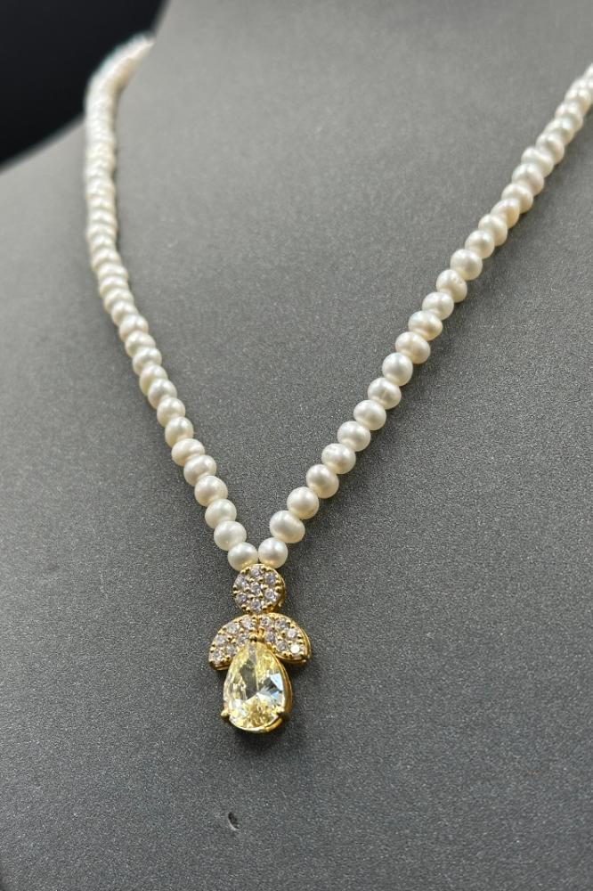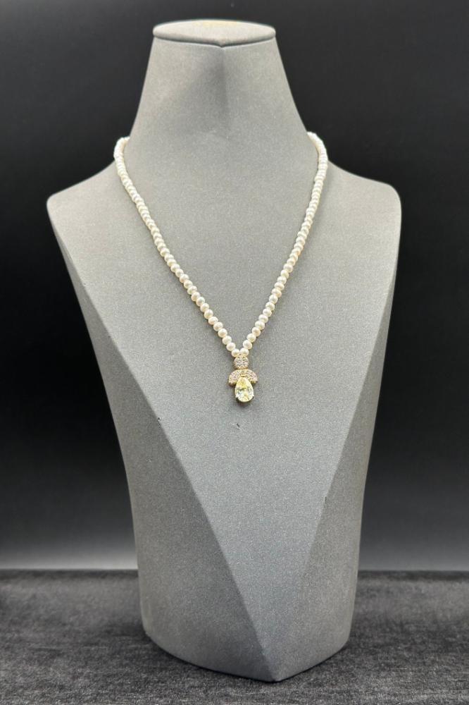 - عقد ذهب مع لؤلؤ مع فص اصفر