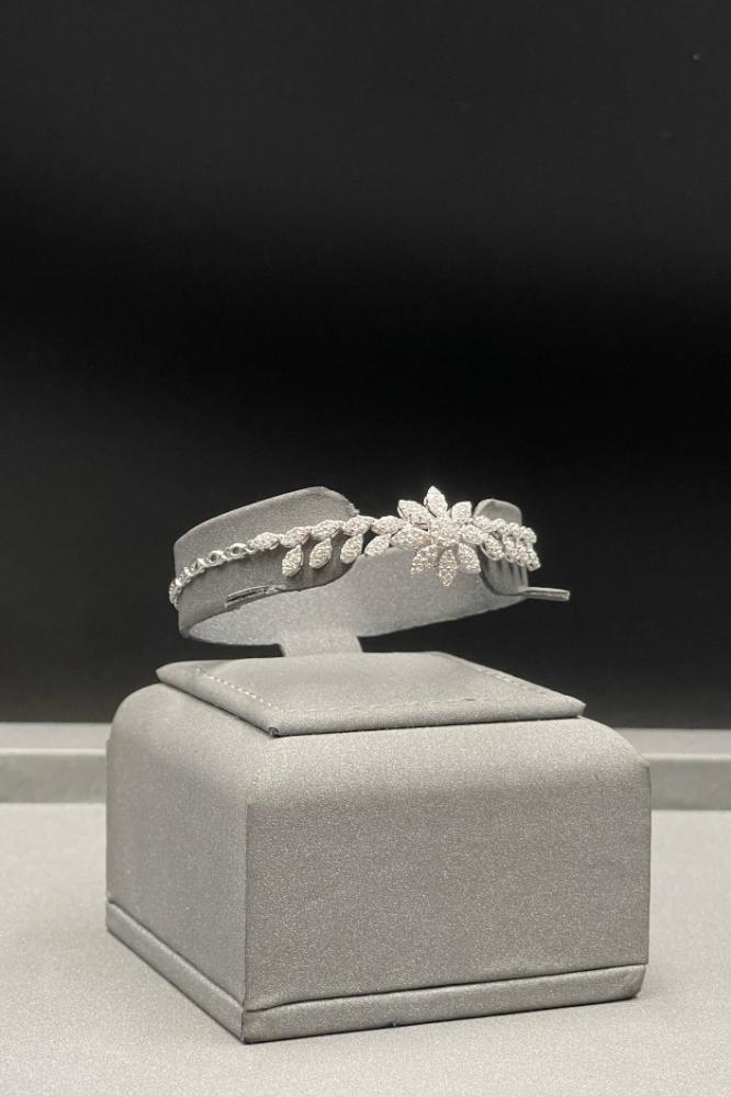 اسوارة وردة ذهب ابيض تصميم الماس عيار 18 وزن 6.9 جرام