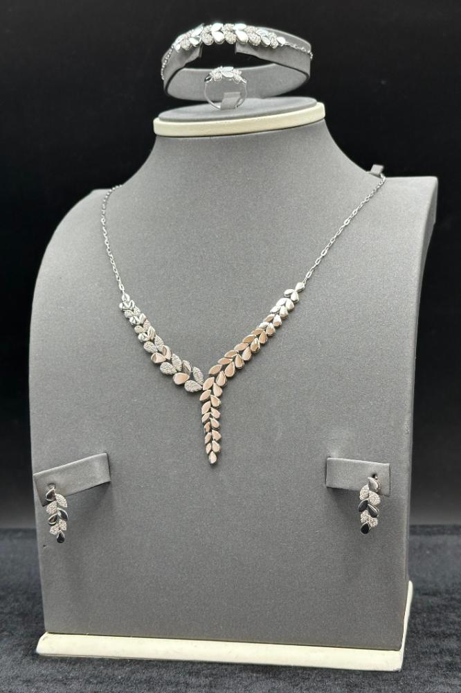 - طقم وردة ذهب ابيض تصميم الماس