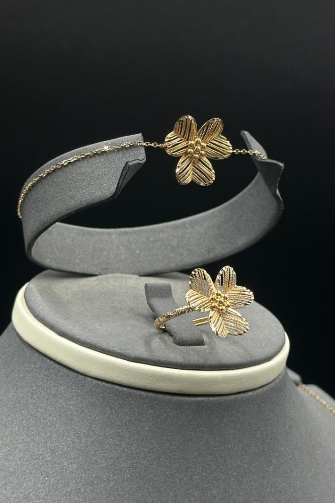 تميزي بطقم الذهب الملكي عيار 21 بتصميم وردة وكور ذهبية، بوزن 9.8 جرام، واجعلي إطلالتك دايمًا أنيقة وجذابة ومليئة بالفخامة. 🌹