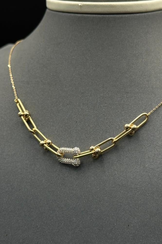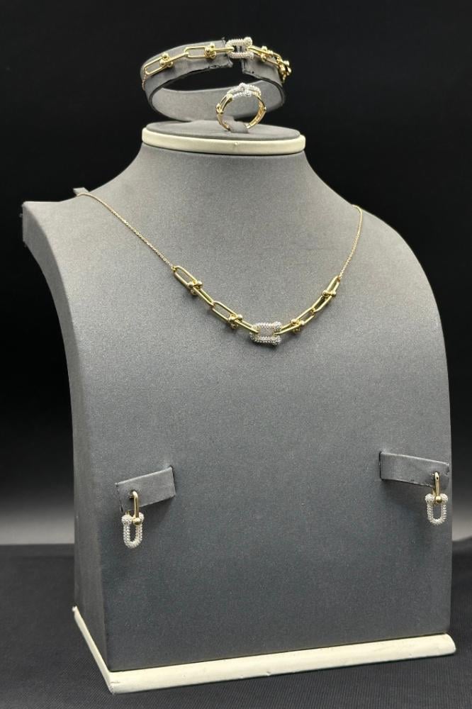 وزن 16.8 جرامعيار 18طول العقد 42 سمطو الاسوارة 18 سمطقم جنزير ذهب تصميم الماسسعر المنتج مرتبط بسعر الذهب العالمي