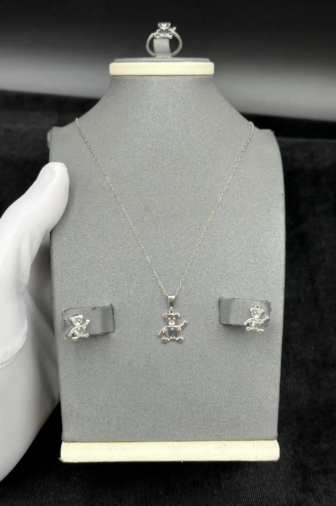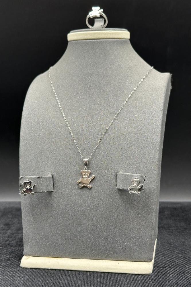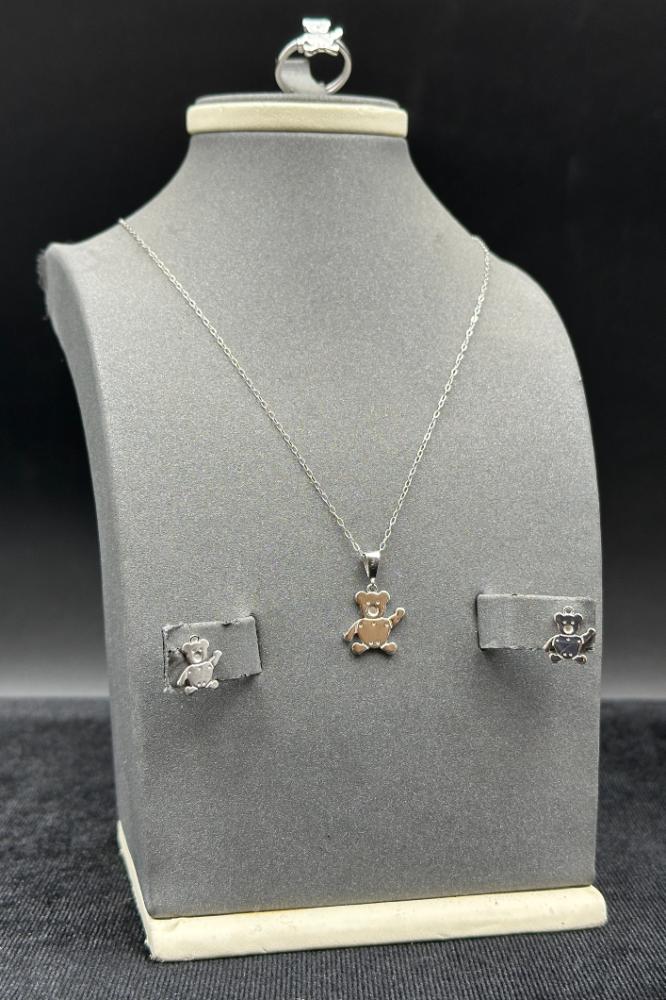 طقم اطفال دب ذهب ابيض صافي عيار 18 وزن 5.2 جرام