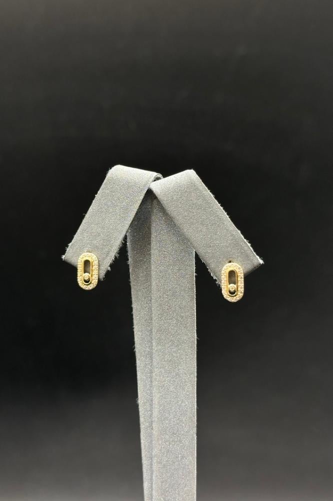 يتميز الحلق بتصميمه المستطيل الأنيق المزين بفصوص الألماس البراقة التي تضيف إشراقة ساحرة على وجهك، مما يجعله خيارًا مثاليًا للإطلالات اليومية أو السهرات الخاصة.