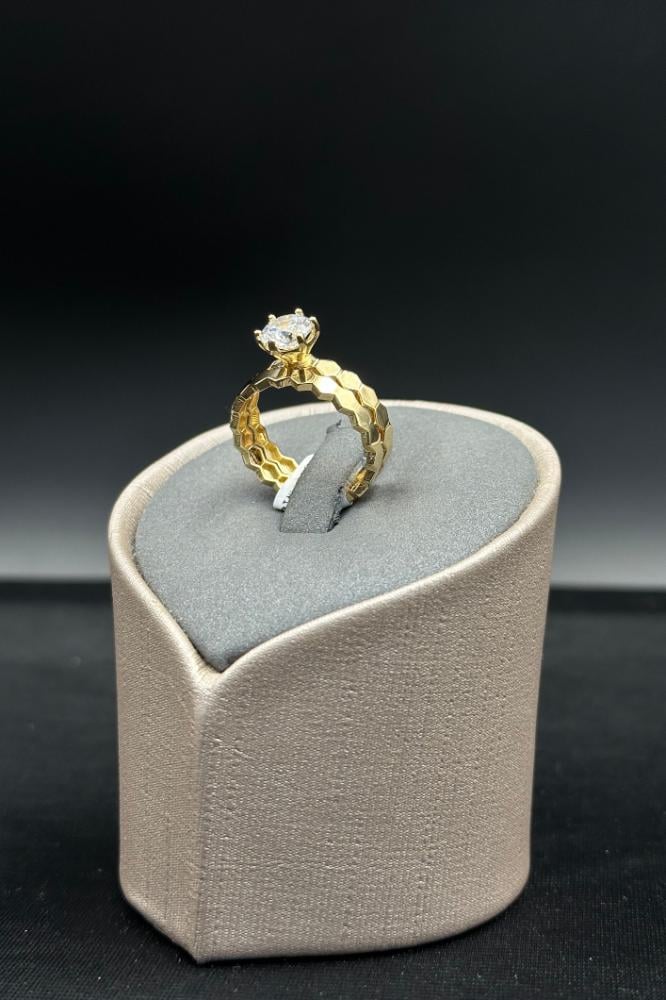 دبلة خلية توينز ذهب مع فص سوليتير عيار 18 وزن 4 جرام