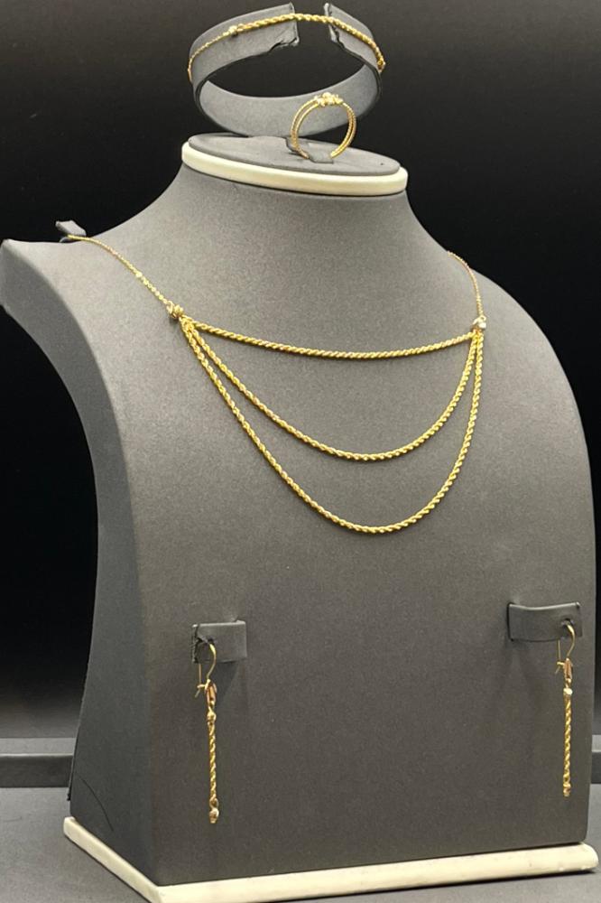 طقم مجدول ثلاثة ادوار ذهب صافي عيار 21