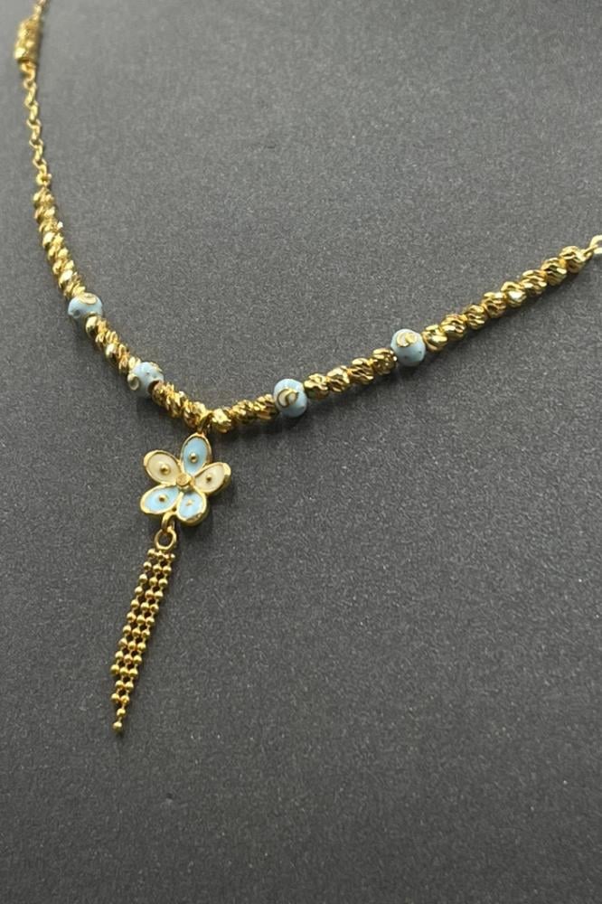 عقد هندي وردة مع لون فيروزي ذهب عيار 21