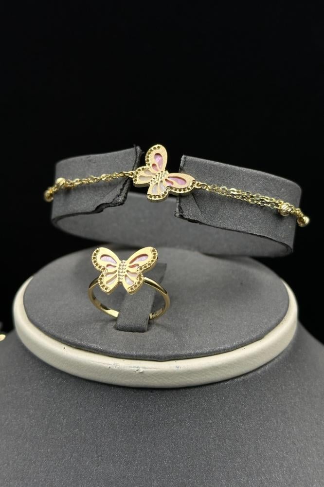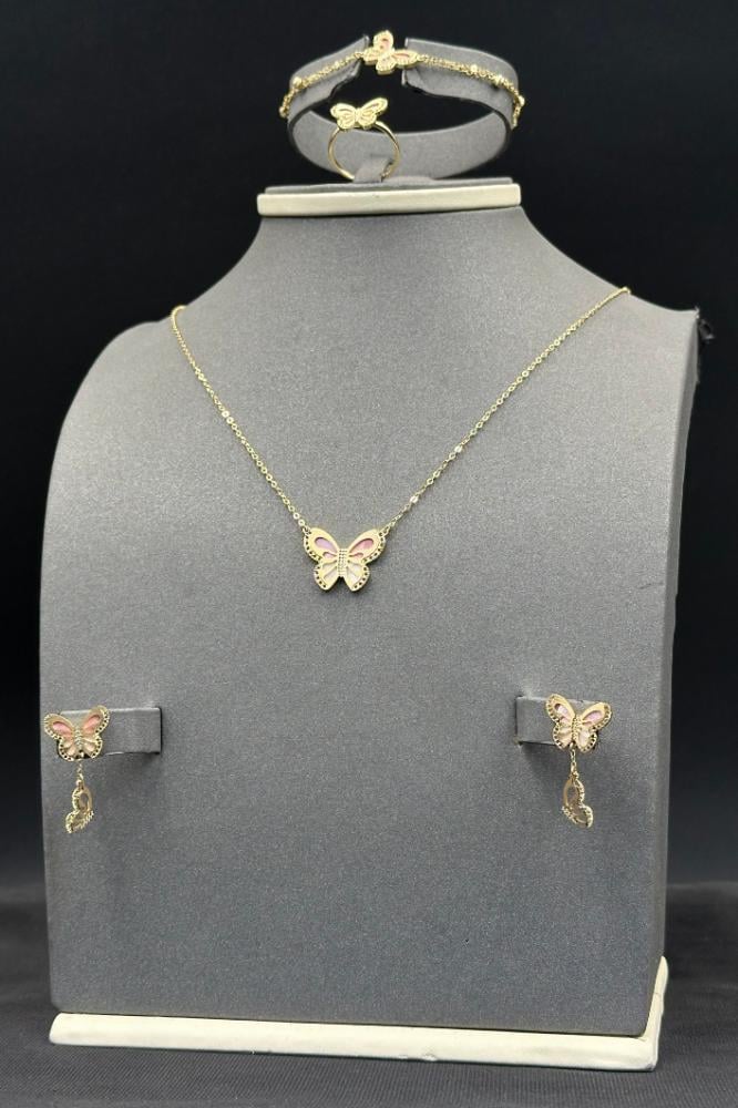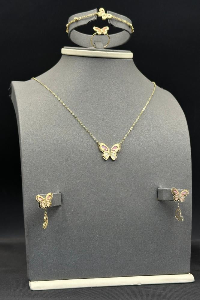 - التصميم: طقم فراشة ذهب مع صدف وردي وأبيض