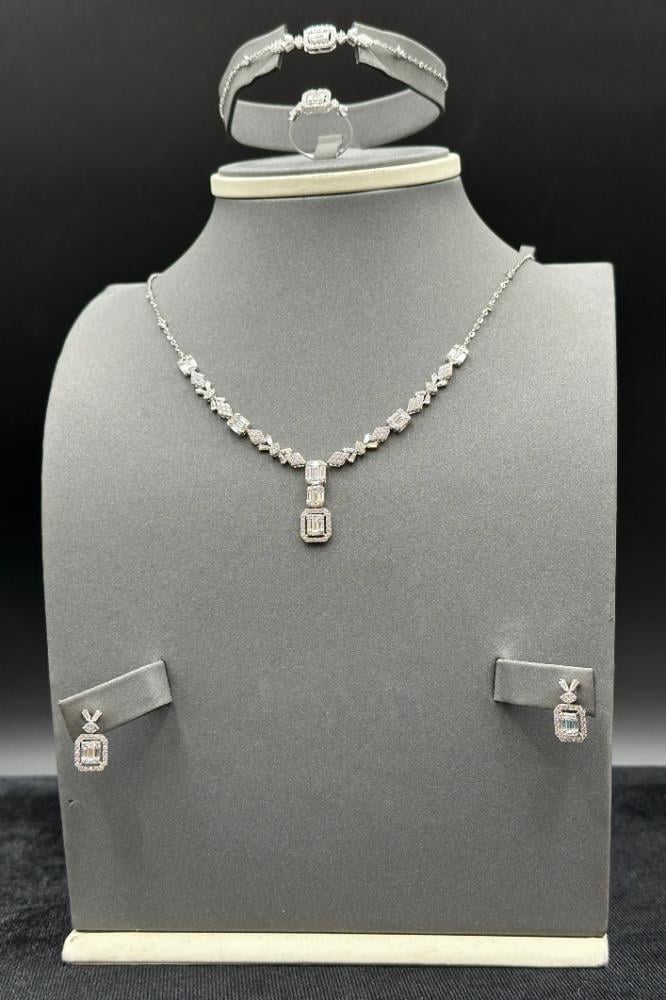 وزن 10.9 جرامعيار 18طول العقد 46 سمطول الاسوارة 19 سمطقم ذهب تصميم الماس سعر المنتج مرتيط بسعر الذهب العالمي