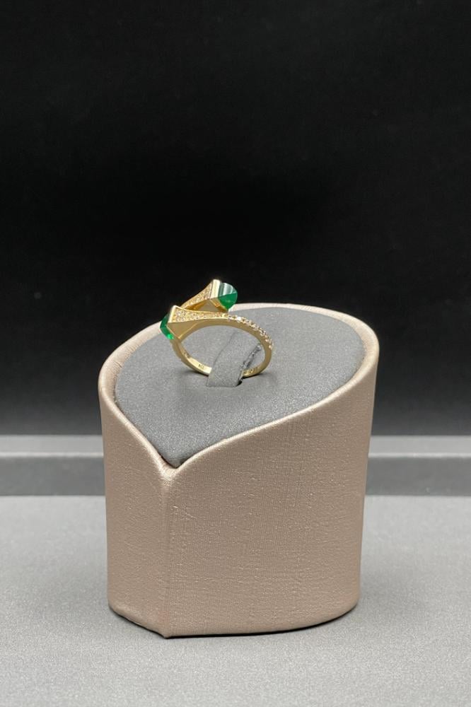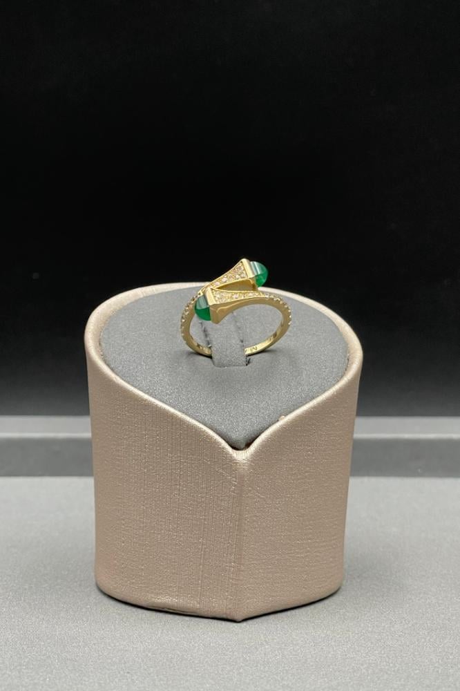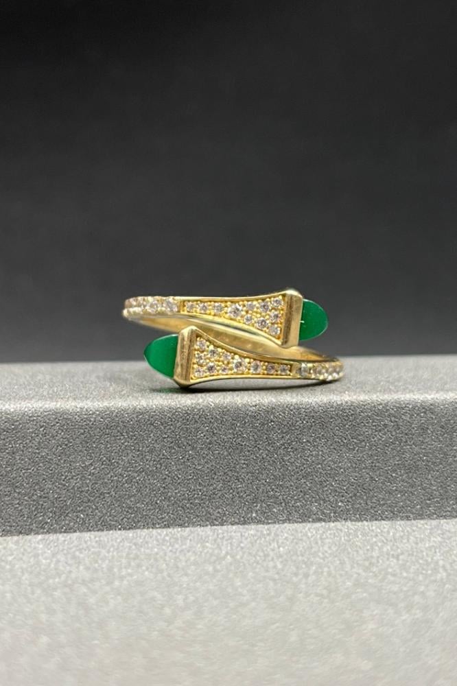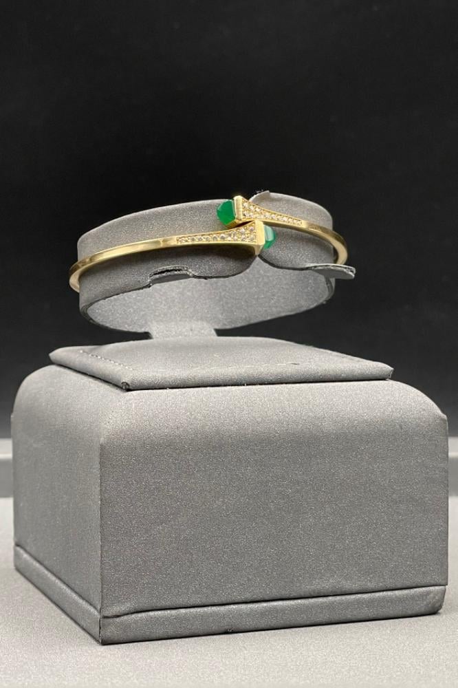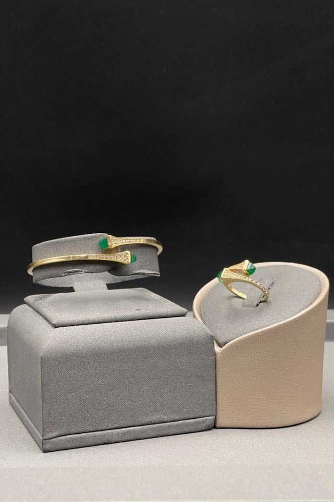 - اسوارة مع خاتم ذهب تصميم الماس مع فص اخضر