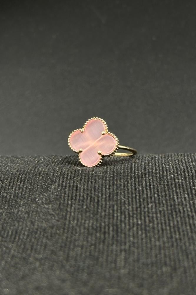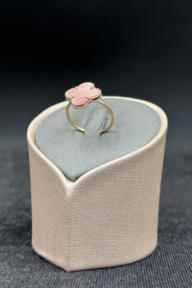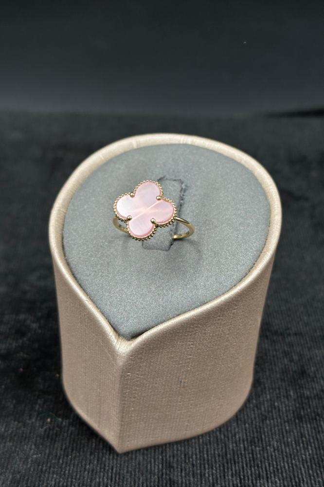 خاتم وردة ذهب مع صدف وردي