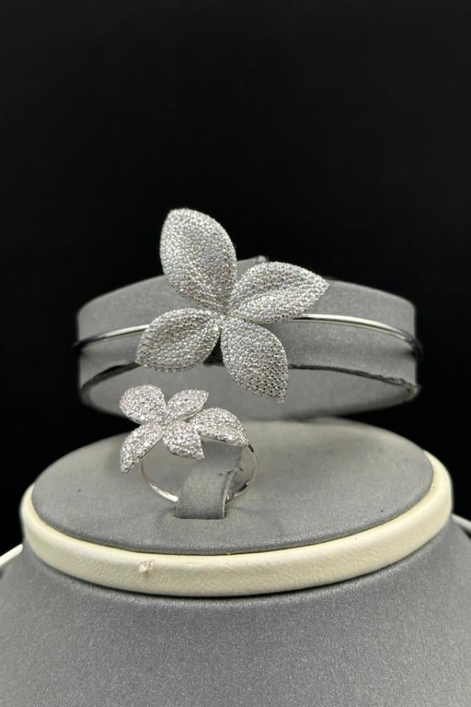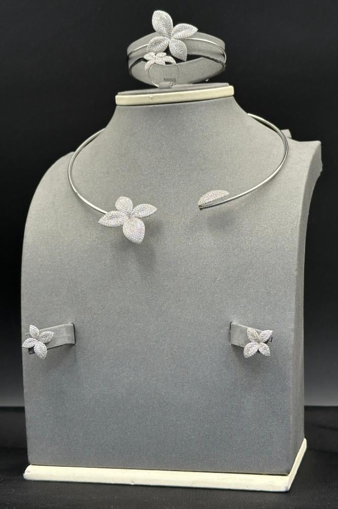 طقم وردة ذهب ابيض تصميم الماس عيار 18 وزن 26.6 جرام