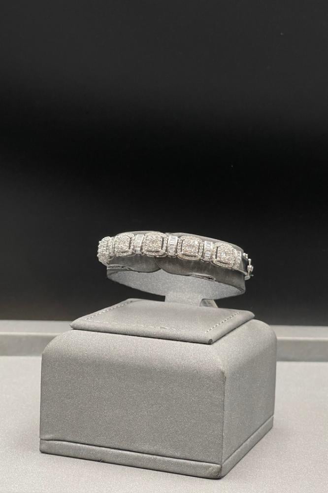 اسوارة مربعات مع باقيت ذهب ابيض تصميم الماس عيار 18 وزن 14.98 جرام