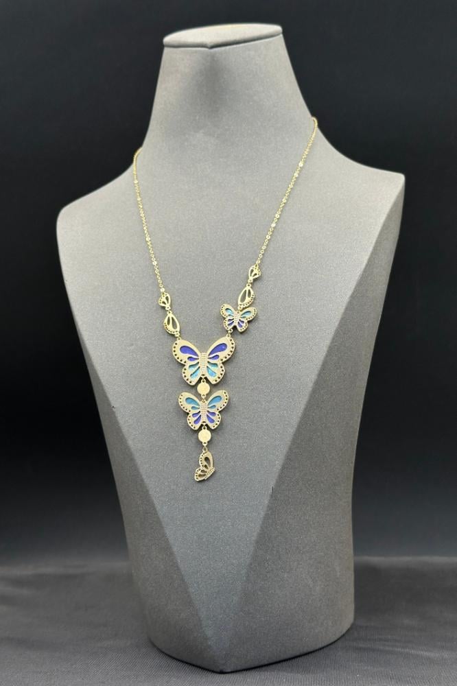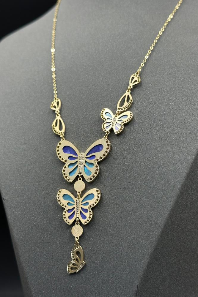 - عقد فراشة ذهب مع صدف بنفسجي وازرق