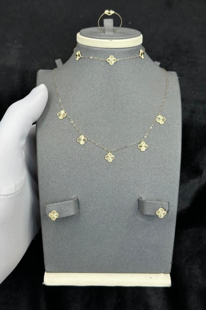 طقم وردة ذهب صافي عيار 18 وزن 2.8 جرام