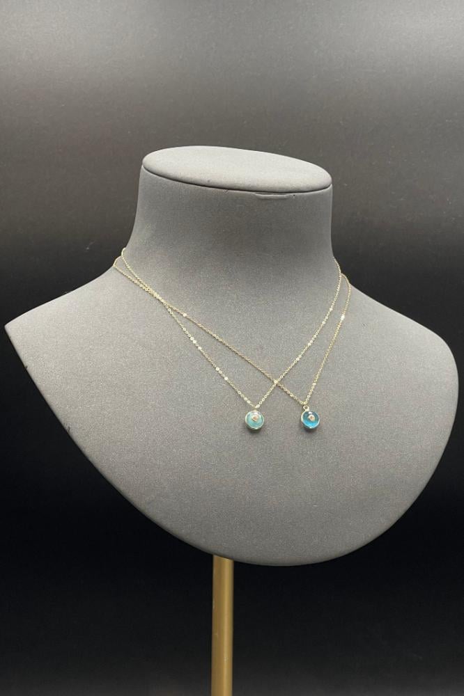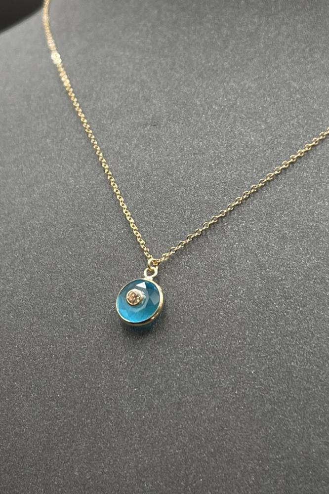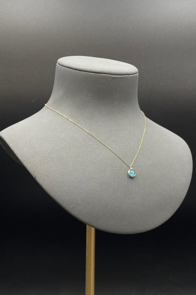 عقد دائرة فيروزي مع فص ذهب تصميم الماس عيار 18 وزن من 1 الى 1.1