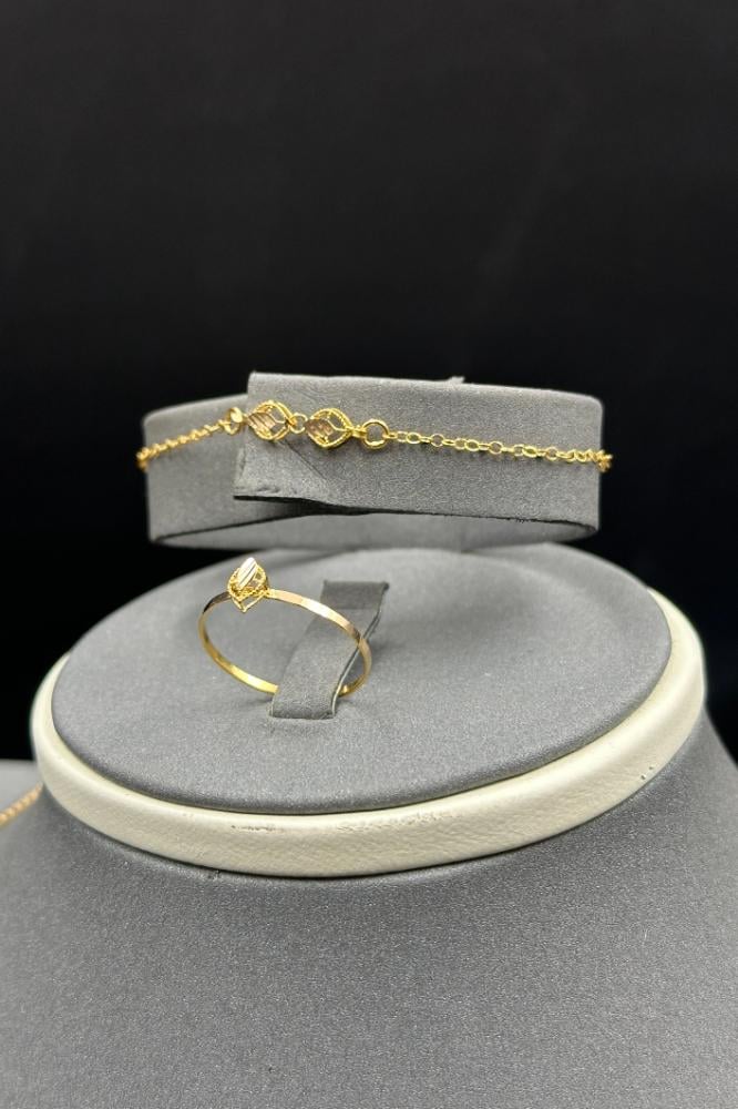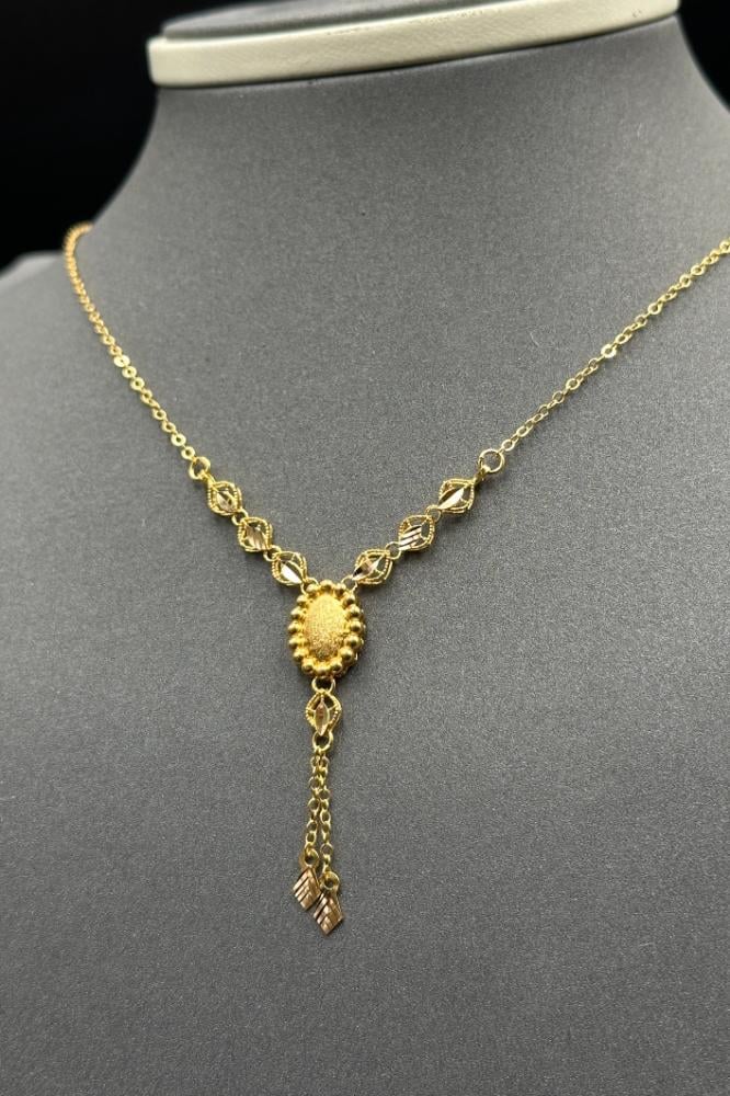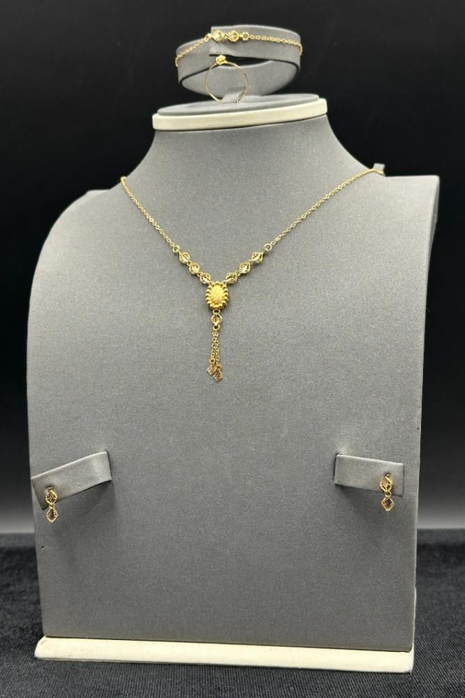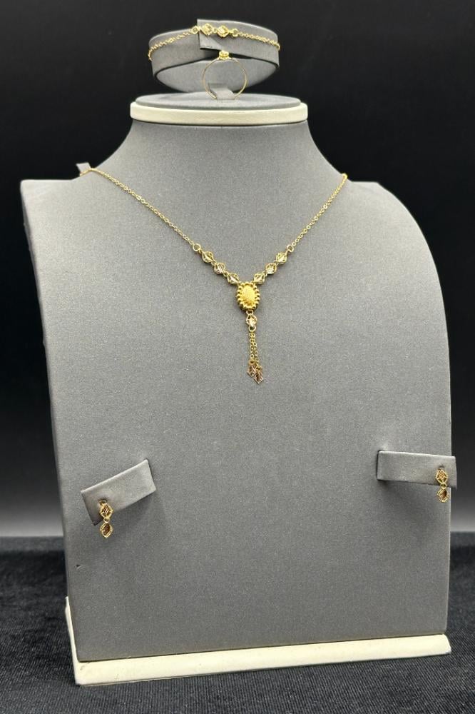 وزن 4.9 جرام عيار 21طول العقد 46 سمطول الاسوارة 15 سمطقم ذهب صافي سعر المنتج مرتبط بسعر الذهب العالمي