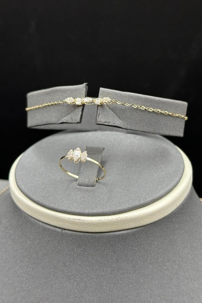 لا تفوتي فرصة اقتناء هذا الطقم الرائع! اكتشفي تشكيلتنا الحصرية من طقم ذهب بتصميم ألماس مناسب لكل المناسبات .