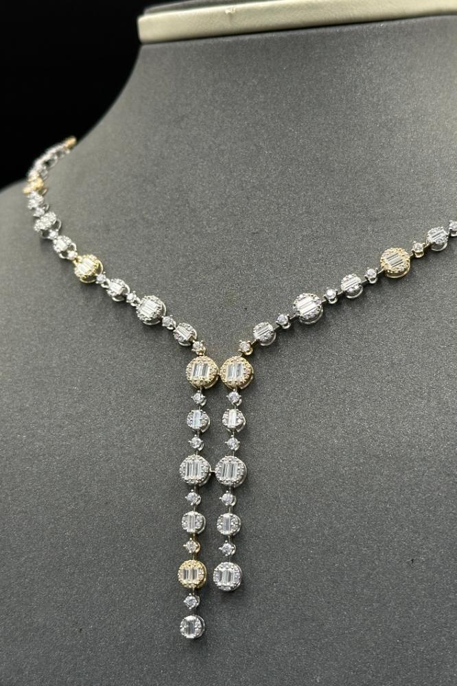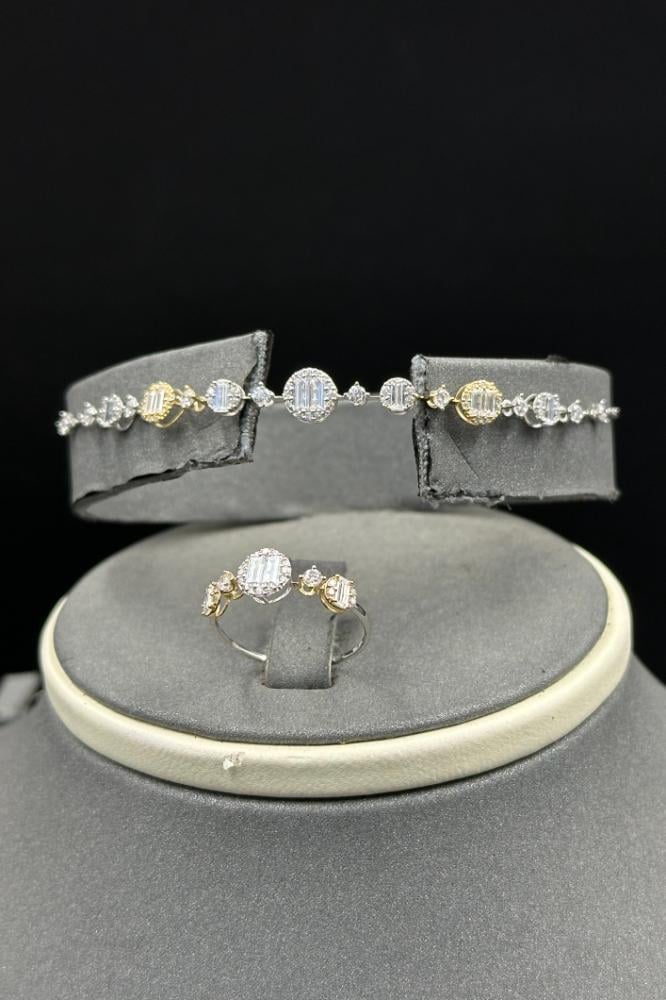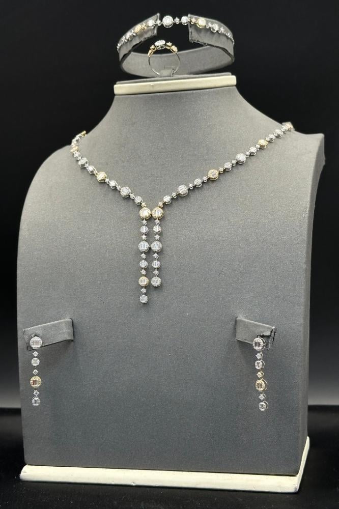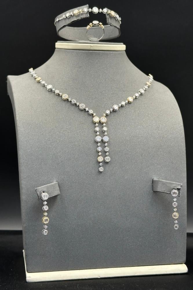 طقم ذهب ابيض مع اصفر تصميم الماس عيار 18 وزن 12.3 جرام