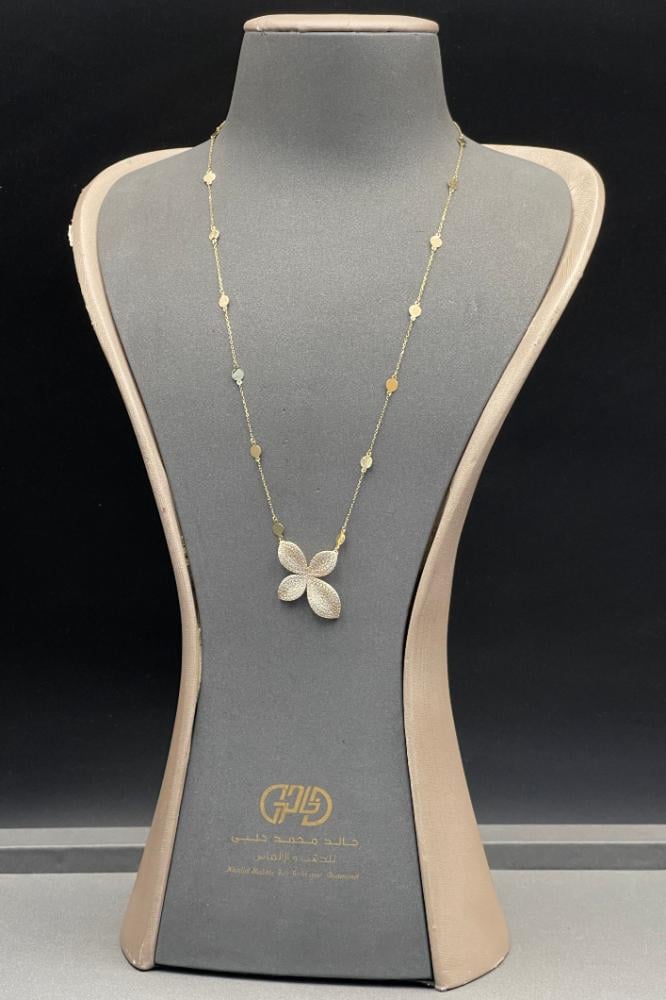 عقد وردة ذهب تصميم الماس عيار 18 وزن 5.4 جرام