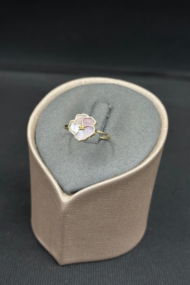 خاتم ورد ذهب مع صدف وردي عيار 18 وزن من 1 الى 1.1 جرام