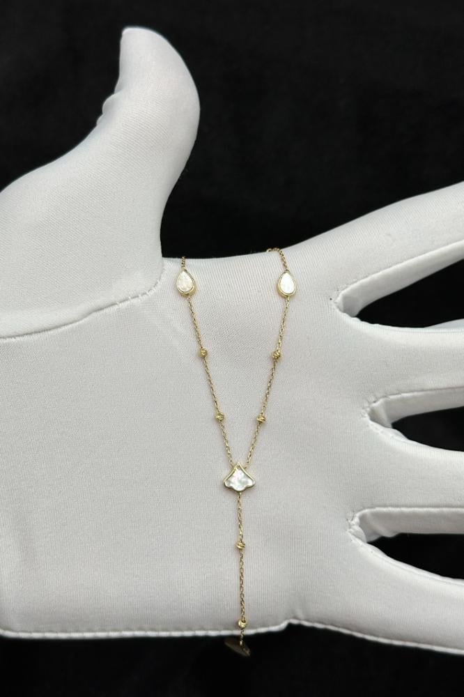 عقد ذهب مع صدف ابيض عيار 18 وزن 2.3 جرام