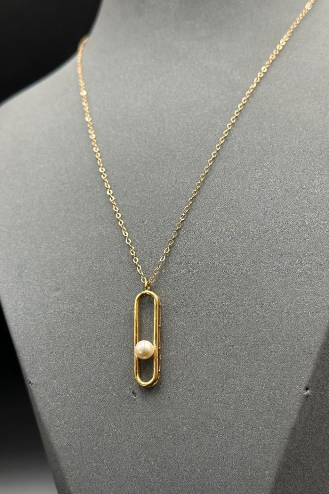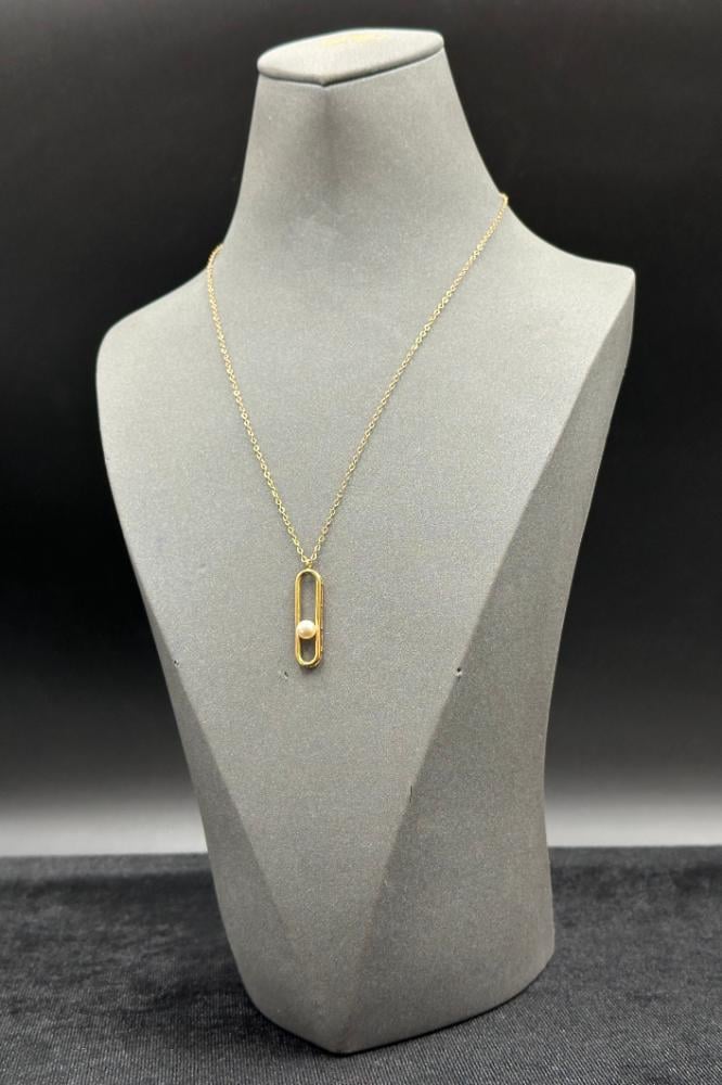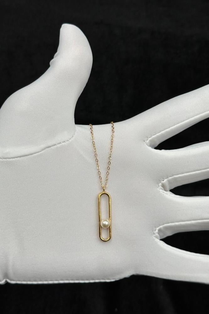 عقد مستطيل ذهب مع لؤلؤ عيار 21 وزن من 2.40 الى 2.45 جرام