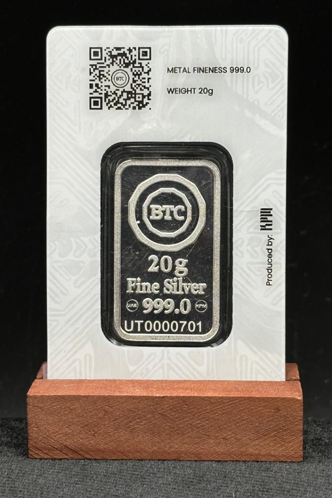 سبيكة فضة شكل وزن 20 جرام عيار 999 بي تي سي (BTC)