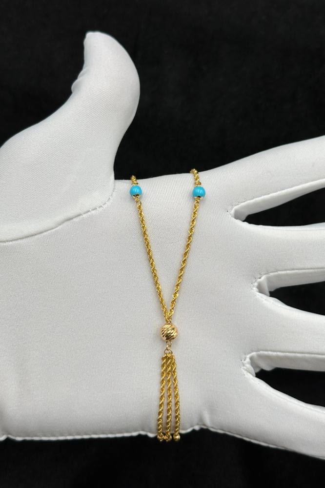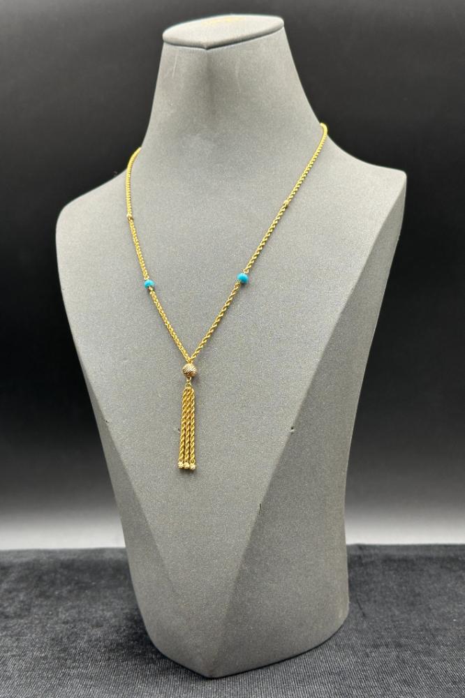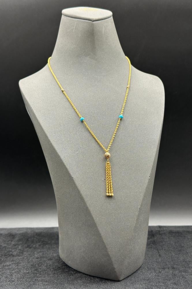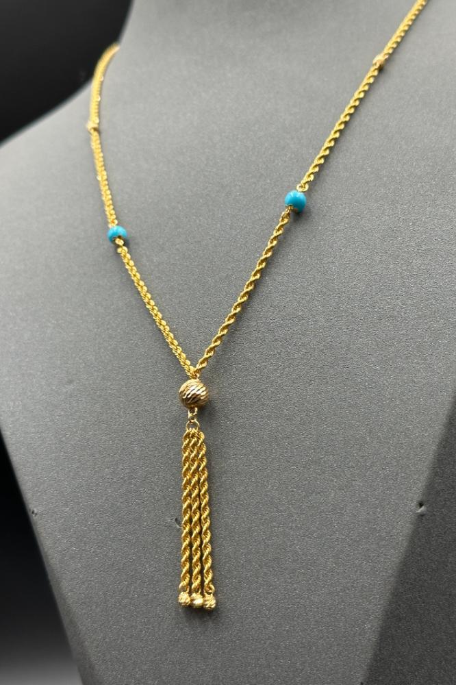 عقد مجدول مع كور ذهب مع صدف فيروزي عيار 21 وزن 3.3 الى 3.4 جرام