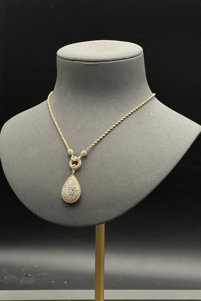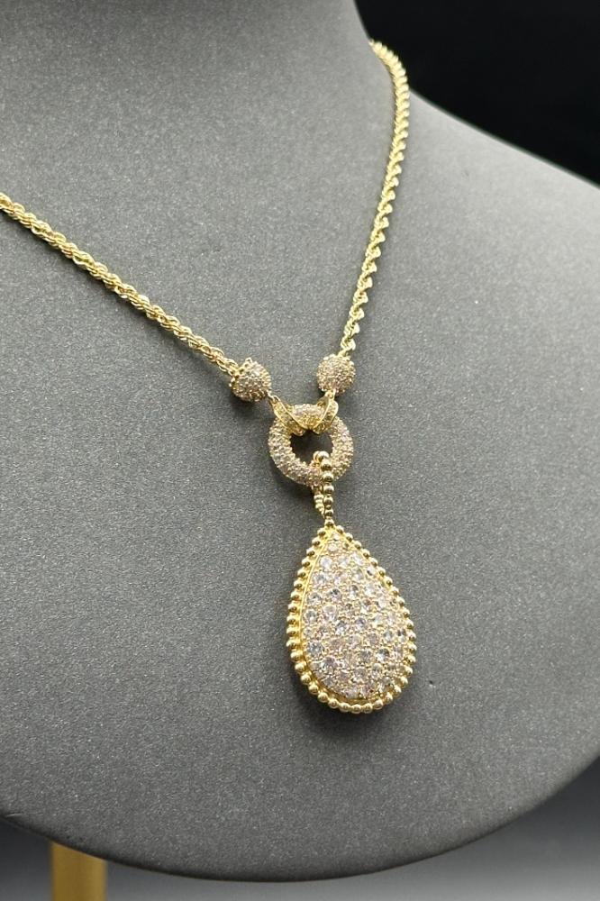 - عقد دمعة ذهب تصميم الماس