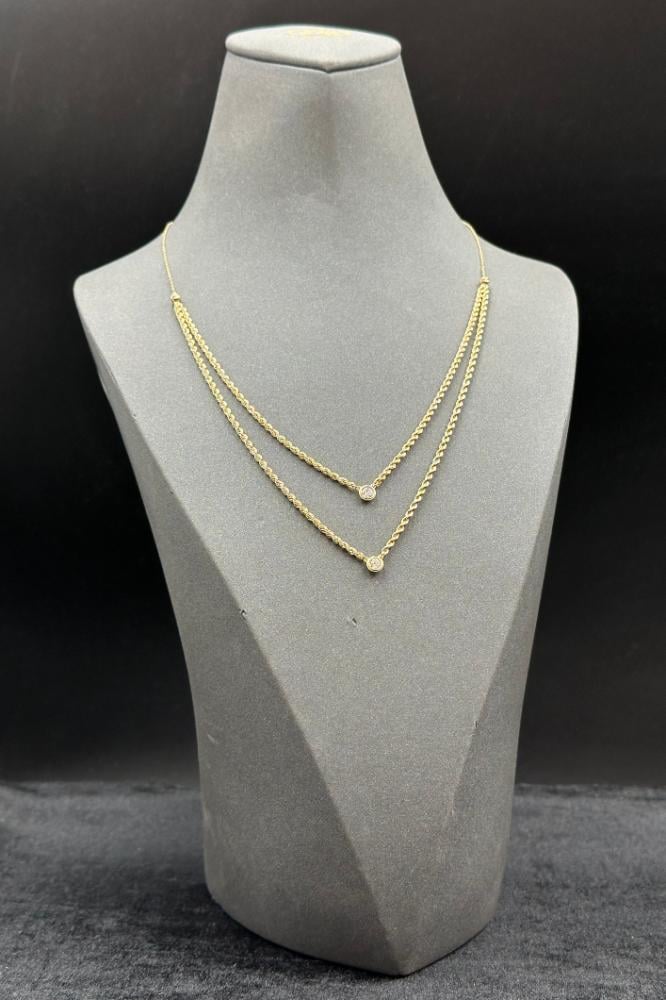 عقد دورين مجدول ذهب تصميم الماس عيار 18 وزن من 3.1 الى 3.2 جرام